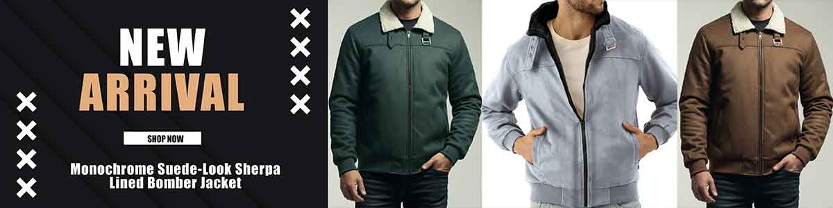 Men's Dark Green Bomber Jacket with Cream Sherpa Collar